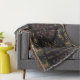Exótica e escura, com cores naturais e um ligeiro sabor do Oriente, o belo padrão original de ZoeSPEAK nesse cobertor de lama foi feito a partir de uma fotografia original de uma latência de ferro em formas brutas e de um tecido tropical. Frentes de palma e outras folhas tropicais, em tons de verde claro, terracota e bege, descansam graciosamente sobre fundo negro atrás da estrutura.