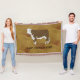Couro de vaca misturado com grãos de couro (foto, falso, não real). Cores amarelas e marrons. Touro castanho claro em texto pastoso e personalizável.