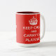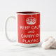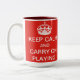 " Mantenha a calma e continue jogar" - esta é uma manobra clássica do diretor do organista ou do coro - algo vai mal durante um hino, um hino ou um voluntário, assim que a melhor coisa a fazer é manter-se no jogo e esperar apenas que ninguém observou! O design tem um fundo vermelho e a coroa famosa com as palavras como no poster de WWII do "para manter a calma e continuar"… a série. Um design do divertimento que todo o músico apreciasse.