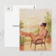Mantenha a Calma e Relaxe Cartão Postal Aquarela para Postcrossing Café Pôr do Sol