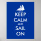 Mantenha a calma e veleja na poster | impressão com veleiro | Vintage WII slogan parody. Faça sua própria mancha com a ajuda deste Mantenha calma e carregar no modelo. A cor de fundo pode ser personalizável a partir do marinho azul.