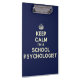 Prancheta da calma do divertimento "mantenha" para um psicólogo da escola. Caracterizado em um azul marinho com rotulação branca torrada. Personalize com um nome na parte inferior, se desejado. Clique simplesmente o botão da personalização abaixo do artigo e datilografe dentro um nome ou iniciais.
