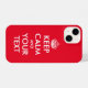 Mantenha calma e carregar no caso do iPhone 14 personalizado. Faça sua própria citação personalizada, mantenha calma. Cor de fundo vermelha ou personalizada. Design de modelo engraçada com tipografia moderna e coroa.