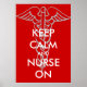 Mantenha calma e enfermeira em posters com caduceu