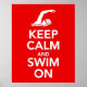 Esta é uma impressão que é uma tomada dos populares posters Manter Calmo da Segunda Guerra Mundial. Ele apresenta um nadador e diz Mantenha a calma e a Natação ligadas com texto branco e imagem em um fundo vermelho. Este é um impressão excelente para nadadores e seus fãs. Trabalho de excelente Michael Phelps e Missy Franklin e o resto dos nadadores de classe mundial!