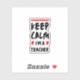 Este adesivo espirituoso apresenta uma jogada inteligente na frase clássica "Manter calma", projetada especificamente para educadores. O texto "MANTER CALMA I'M A TEACHER" é apresentado em letras negras a negrito num fundo branco, com pequenos acentos vermelhos, incluindo uma linha no topo, e ícones de maçã que flanqueam a palavra "I'M A". O design combina o orgulho profissional com um toque de humor, fazer-o perfeito para as configurações educacionais.