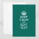 Seu festivo personalizado, mantenha calma dizendo sobre um belo estilo personalizado dom do sotaque de turquesa. Um estilo personalizado "Manter Calmo" dizendo. Humorístico ou caprichoso experimente suas palavras criativas em duas linhas editáveis de texto. Lembre-se de usar letras CAPITAL para obter melhores resultados. Use o link "Perguntar a este Designer" para entrar em contato conosco com suas solicitações especiais de design ou para obter assistência com suas necessidades de personalização.