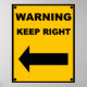 Sinal de aviso engraçado com uma seta apontando para a esquerda. O texto diz: Mantenha-se à Direita.