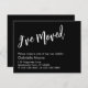 Neste simples design, o cabeçalho - "Eu Movi" - foi renderizado em uma fonte moderna de escrita manual. A mesma fonte foi usada para "Permanecer em Toque! na parte de trás. Outros detalhes aparecem em uma fonte bonito, tradicional sans-serif. Todo o texto, cores, fontes e layout podem ser alterados conforme desejar.
