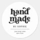 Essas etiquetas de embalagens para pequenas empresas, de preto e branco, de tendências, apresentam a tipografia retrô-negra, em um simples fundo branco. O texto diz "feito à mão", e há espaço para seu nome ou nome de sua empresa, e o nome do seu produto. Um olhar profissional e na moda, perfeito para qualquer tipo de produto, como velas, roupa, artesanatos e cerâmica.