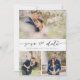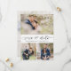 Escolha as melhores fotos de sua filmagem de noivado ou suas fotos favoritas de vocês dois para salvar a data perfeita. As palavras salvar a data são manuscritas para dar uma sensação pessoal ao cartão. A frente tem 3 imagens e a parte traseira tem uma grande imagem com um filtro branco no topo. Edite esta opção para salvar o cartão de casamento de data com suas informações e personalizá-lo para obter mais informações sobre opções de cores de fonte e fonte.