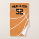 Mão o basquetebol ostenta a toalha, toalha de banho do