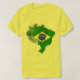 O brasileiro ventila camisas da bola de futebol do mapa de Brasil.