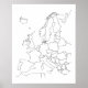 Mapa da Europa com contornos vazios de países em preto e branco para usar para fins educacionais, para manter o controle dos lugares que você viagem ou para qualquer outro propósito. Escreva para rotular os países com as suas próprias informações.