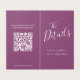 A recepção de casamento e após a festa, a agenda e o cartão de cartaz de cartografia com código QR fazem parte do conjunto de casamento simples tipográfico de roxo roxo e branco. Ideal para usar como cartão de informações de casamento ou como cartão de instruções para manter seu convidado informado para onde ir no dia e na festa seguinte, também pode ser usado como cartão de alojamento. Todo texto é editável simplesmente substitua por seus próprios locais e horários e depois substitua o mapa de amostra por seu próprio e mova os pontos de sinalização de letras para os locais de seu local. Adicione seu próprio código QR ao contrário para ajudar a obter mais informações ou mudar informações para seu convidado e para dar a eles a opção de responder on-line. Se você precisar de ajuda para personalizar ou mudar este design para atender às suas necessidades, entre em contato. Outros itens correspondentes e opções de cor disponíveis. Design por Sarah Trett para www.mylittleedenweddings.com no Zazzle.