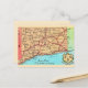 Um mapa muito antigo e vintage de Connecticut reaproveitado em cartão postal!