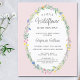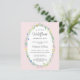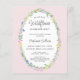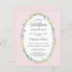 Convide a família e amigos para o chá de fraldas da sua menina com este bonito convite para flores silvestres. É decorada com uma estrutura oval de flores desenhadas à mão, verde e tipografia na moda num fundo rosa claro. Facilmente personalizável. Use a Ferramenta Design para alterar o tamanho, o estilo ou a cor do texto. À medida que criamos a nossa trabalho de arte, não encontraremos esta imagem exata de outros designers. Desenho de Mão Original © Michele Davies.
