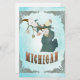 Mapa de Aqua Michigan com pássaros adoráveis em galhos de árvores