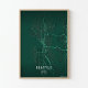 Uma impressionante impressão artística do mapa de Seattle renderizada em uma vibrante paleta de cores da Cidade Esmeralda. Todas as ruas, rodovias e vias navegáveis são mapeadas em detalhes finos contra um rico fundo esmeralda. Perfeito como uma peça de destaque para sua casa, escritório ou como um presente para qualquer Seattleite.