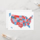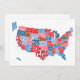 Um mapa de texto tipográfico dos Estados Unidos da América. Cada estado é representado pelo seu nome, que é formado para ajustado no contorno geograficamente correto do estado. Texto vermelho, branco e azul sobre fundo branco.