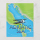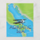 Poster de viagens do mapa de voo do mar Adriático com um pequeno avião de apoio.