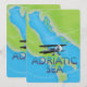 Poster de viagens do mapa de voo do mar Adriático com um pequeno avião de apoio.