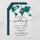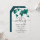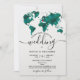 Planejando o casamento no destino romântico? Convide seus convidados com este lindo convite de tinta rosa com um mapa mundial e seu destino personalizado marcado com o coração móvel.