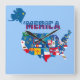 Mapa Patriótico Da América Com O Relógio De Parede Dos Estados. Qualquer cor de fundo disponível. Para cores diferentes, clique em "personalizar"-"editar"-"fundo" e você pode substituir a cor azul padrão. com