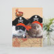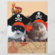 Os gatos piratas estão sentados num velho tapete turco com mapas do tesouro de piratas em fundo cor-de-rosa. Foto e design de gráfico digital por Búlgaro Lumini (c)