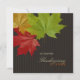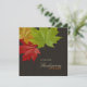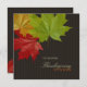 Janto moderno e elegante de Ação de Graças / modelo convite de festas com tema colorido do outono, com lindas folhas de carapaça vermelhas, laranja e verdes sobre fundo castanho de chocolate. Personalize-o com o seu próprio texto em ambos os lados ou personalize-o ainda mais se quiser ajustar o layout e o texto ou escolher um tamanho de convite diferente. Também estão disponíveis envelopes e carimbos correspondentes: