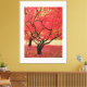 Photo of Japanese maple trees with dark curved branches and bright red leaves in autumn