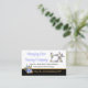 Cartão de visita de costura personalizada feita em branco, com uma faixa preta, na parte inferior. Uma máquina de costura floral branca decora o canto superior direito e flores bonito estão no canto inferior esquerdo. Personalize todos os campos de texto para suas necessidades comerciais. Escolha o estoque de cartão que você prefere com este design.