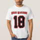 T-shirt médio do preto, o branco e do vermelho da máquina, com número 18. Excelente para o entusiasta do futebol ou do filme da fantasia. É você um animal na grelha? Mostre suas habilidades com esta engrenagem irritada do homem ou do atleta dos homens.