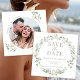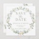 Flores florais brancas rústicas e elegantes com jardim de texto verde empoeirado ou casamento de celeiro Salve o convite para fotos de Data.