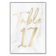 Adicione um toque de na moda à sua recepção de casamento com placas de mesa personalizadas. Os cartões de mesa de casamento apresentam um fundo de mármore branco e uma letra falsa de script de moda dourada. Números adicionais podem ser encontrados na coleção abaixo.