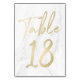 Adicione um toque de na moda à sua recepção de casamento com placas de mesa personalizadas. Os cartões de mesa de casamento apresentam um fundo de mármore branco e uma letra falsa de script de moda dourada. Números adicionais podem ser encontrados na coleção abaixo.