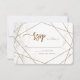 Estas cartas de RSVP de casamento na moda e modernas apresentam um aspecto de mármore branco com linhas geométricas de cobre falsas e tipografia de tendência.
