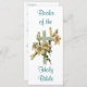 Um belo cartão que é perfeito para usar como marcador para sua bíblia. A frente tem uma cruz azul coberta de flores. As costas têm os livros do novo e antigo testemunho.