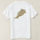 A frente desta camiseta tem uma pequena bandeira marroquina com sua conhecida estrela verde de cinco pontas em um fundo vermelho, enquanto a parte de trás exibe um mapa de alivio de Marrocos. Disponível em t-shirts, camisas de suor, polos, capas compridas e muito mais.