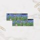 Um campo de flores de milho em tons de azul profundo e pálido, roxo, lavanda e rosa, com folhas verdes pálidas.