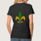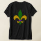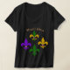 Esta Camiseta feminina apresenta uma design colorida de Fleur de lis nas cores tradicionais do Mardi Gras. Um lado tem três "New Orleans Lily" e a expressão "Mardi Gras", o outro lado tem apenas um grande Fleur de lis. Perfeito como acessório colorido não só para a temporada do festival, mas todo o ano.