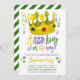 Um pequeno rei está a caminho! Faz um convite excelente para celebrar o seu chá de fraldas nesta Mardi Gras Season!