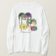Camiseta básica de manga comprida branca com uma imagem de quatro máscaras coloridas Mardi Gras adormecidas com penas brilhantes, sequelas e brilho. Texto opcional. Veja toda a coleção de Roupa do Mardi Gras nos TOUCHES ESPECIAIS | Seção Favoritos para festas.