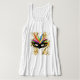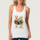 Perfeito para vestir a suas festas de mardi gras, este topo de tanque feminino é mostrado em rosa-framboesa com estrelas douradas e impressão de máscara de mardi gras. Personalize esta camisa ou comprar como está.