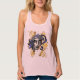 Perfeito para vestir a suas festas de mardi gras, este topo de tanque feminino é mostrado a preto com estrelas douradas e um impressão de máscara de mardi gras. Personalize esta camisa ou comprar como está.