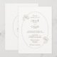Elegante e sofisticado. Este cartão de convite de casamento luxuoso moderno apresenta um conjunto contemporâneo de fontes taupe e acentos de caligrafia ao lado de uma moldura floral oval trendy. O verso inclui um acento de ilustração floral, site e iniciais do casal, contra um fundo branco marfim suave. Este cartão parece intencional e faz uma declaração elegante. Em toda a coleção, o design atencioso e sofisticado traz um senso de coesão e intenção.