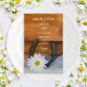 Personalize o encantador Menu de Casamento Ocidental da Margarida Branca e da Terra de Ferradura com os detalhes da refeição que você servirá no seu almoço de chá de panela do estilo fazenda ou fazenda rural, poste o brunch de casamento ou o janto de recepção de casamentos, adicionando a salada ou o primeiro curso, a entrada ou o segundo curso e a sobremesa ou o terceiro curso. Este menu de casamento do tema equestre, costume do chic, apresenta uma fina fotografia floral de uma flor branca margarida, ferradura ferrugem, colar pérola, véu branco de brasa e um fundo de madeira de celeiro marrom-curado.
