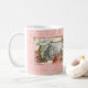 Eu amo France e deleito-me na beleza elegante da arte francesa do século XVIII e projeto-me. Este design é meu ode a Versalhes e Marie Antoinette. O castelo é moldado no meio, com Marie e alguns rosas cor-de-rosa gastos em uma compota em cada lado. Há igualmente uma bandeira com o motivo da caneta e do inkwell de quill, lendo "Versalhes," no canto superior. O fundo tem um olhar antigo do pergaminho com trabalho cor-de-rosa da borda do grunge. Tudo quadro por uma beira da escrita ouro-tonificada. A imagem aparece em ambos os lados do copo. Mostrado com um fundo cor-de-rosa e uma beira marrom, mas você pode escolher um outro estilo da paleta de cores ou da caneca quando você a personaliza.