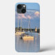 Muitos pequenos artesanatos atracados numa marina da Flórida no pôr do sol logo após a chuva.