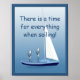 Ilustração gráfica de veleiro com dois marinheiros rezando em uma poster pelo artista/designer Charmaine Paulson. O texto personalizável diz: "Há um tempo para tudo ao navegar! ©2013charmanepaulson
